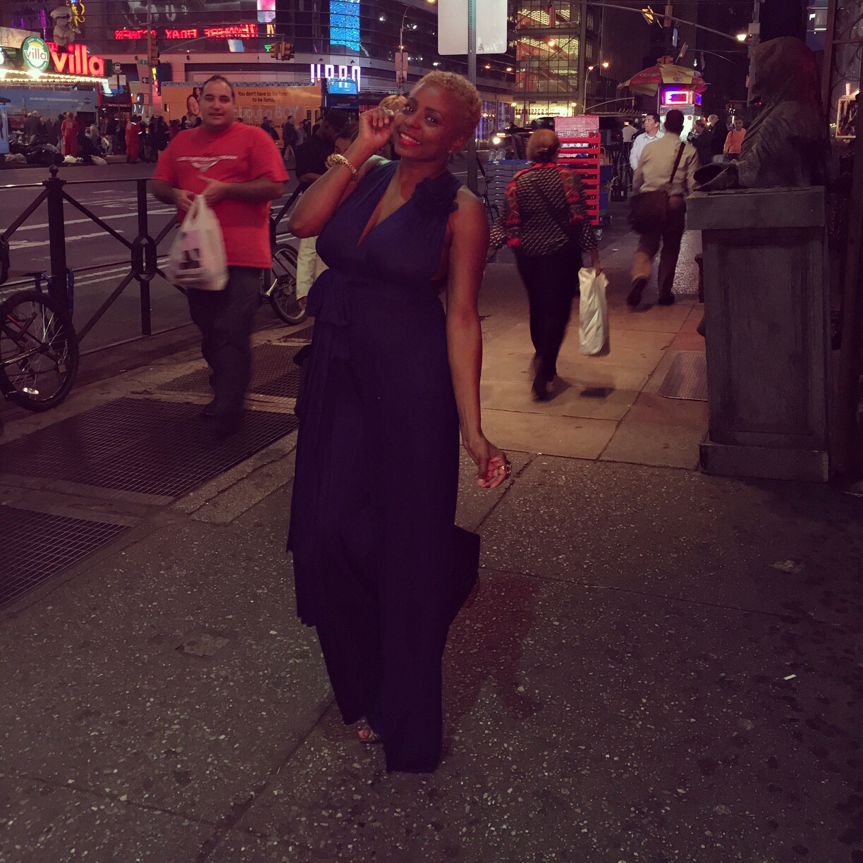 People often tell me that I look like I popped out of the 70s! I was born in the 70s so I don’t mind! I love a good jumpsuit and adding personal little touches to make the look your own is what style is all about! The jumpsuit I’m wearing is from http://www.MysEleganceBoutique.com. I added a flower to give it a little something extra. The jumpsuit is a multiway, so the top can be styled many different ways. My bag is vintage Fendi and my wedges are from Fendi spring 2008, but can be found on eBay and other sites. It was a lovely day in NYC and I’m not ready to cover up my toes :-). I went out for dinner in the city with a friend and had a lovely time! I hope you all had a wonderful Wednesday! Until next time!